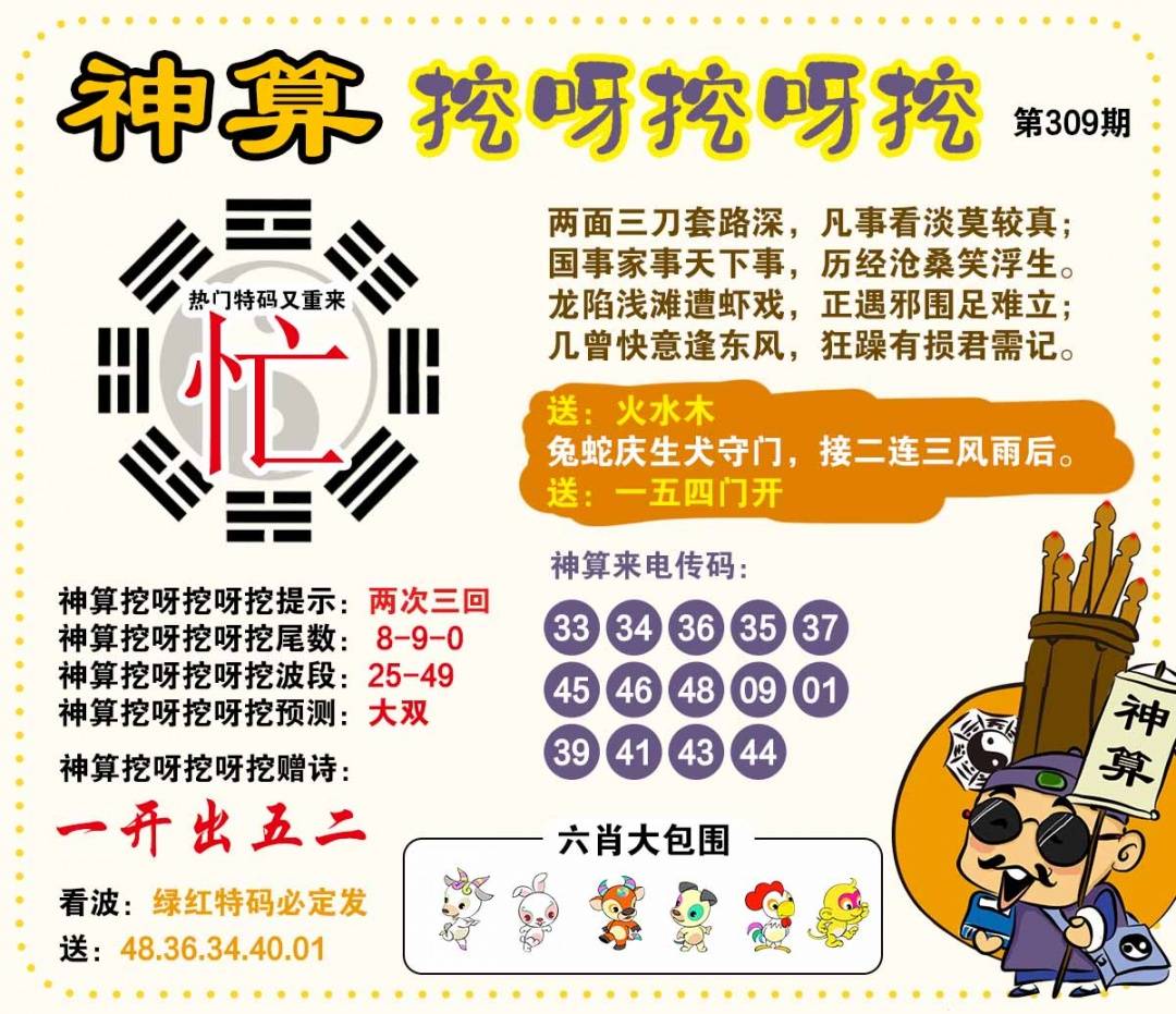 | 309期:必中五肖: 羊猴猪兔龙 |